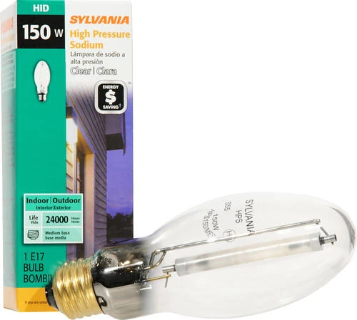 The most common applications for the Sylvania 150-Watt E17 High Pressure Sodium Medium Base HID Light Bulb are atriums, flood lighting, industrial lighting, commercial lighting, retail lighting, lobbies, parking lots, security lighting and shopping malls. This light bulb has a CRI of 22.
