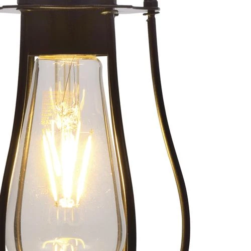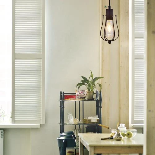 Sylvania Black Cage Pendent with a ST19 Light Bulb. This light has a 15′ cord and plug for easy installation.