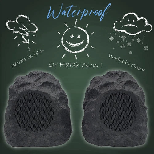 Rise or shine enjoy music in your backyard, patio or verandah with the Sylvania Rock Speaker set. Designed to last, this set of speakers is molded out of durable polyresin and is IPX 5 Weather Resistant. The speaker set is Bluetooth enables and allows you to easily connect with your Bluetooth enabled device to easily stream music. Connect the 2 rock speakers to have the True Wireless Stereo Sound.