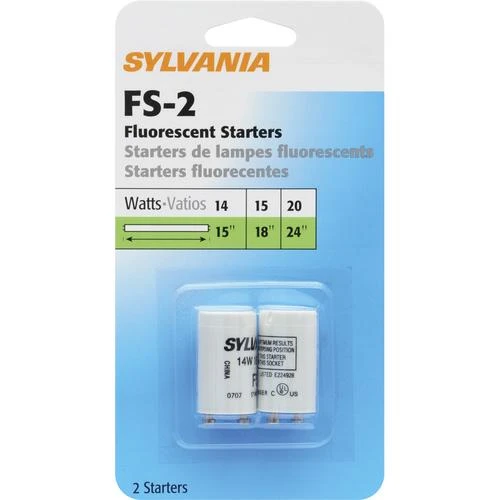 The most common applications for the Sylvania Fluorescent Starters are fluorescent fixtures. These starters come in a convenient 2-pack.
