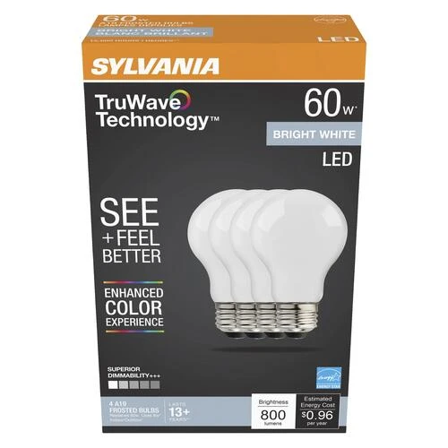 Sylvania® TruWave™ Natural Series™ 60W Equivalent A19 Bright White Dimmable LED Light Bulb – 4 Pack